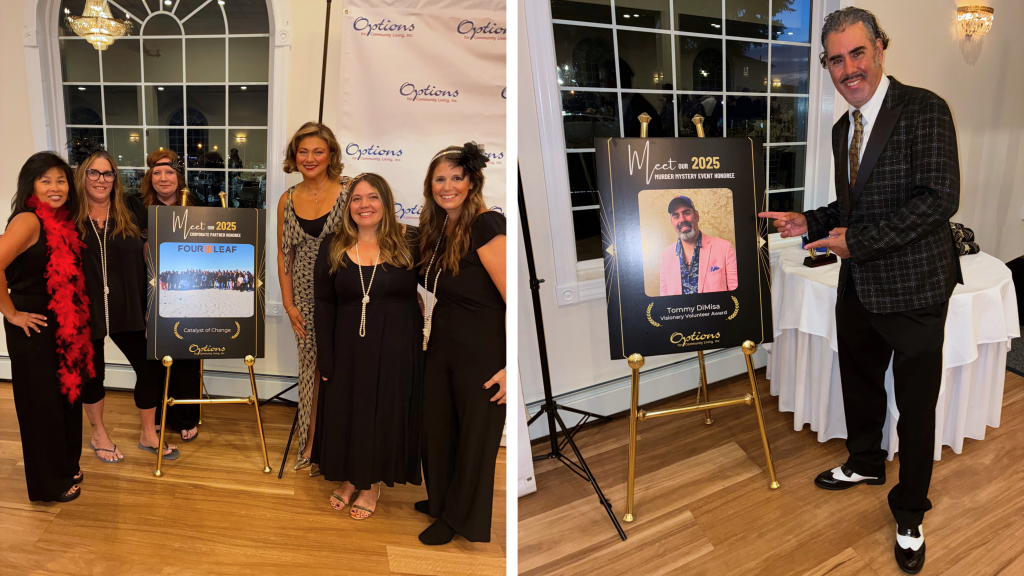 Bay Shore, NY – Options for Community Living, Inc. (Options) hosted its third annual “Murder Mystery” fundraiser at Captain Bill’s in Bay Shore, delighting more than 200 guests with a 1920s-themed evening titled Death of a Gangster – A Mafia Marriage Murder Mystery. Attendees enjoyed dinner, refreshments, and an interactive experience as they questioned suspects and worked in teams to solve a theatrical whodunit.